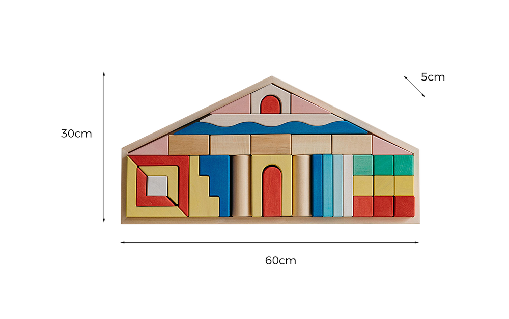 AVDAR Big Block Set includes 37 diverse pieces from basic shapes like cube, triangles and brick block, to more interesting ones like the long waves, cylinders and stair shapes.
