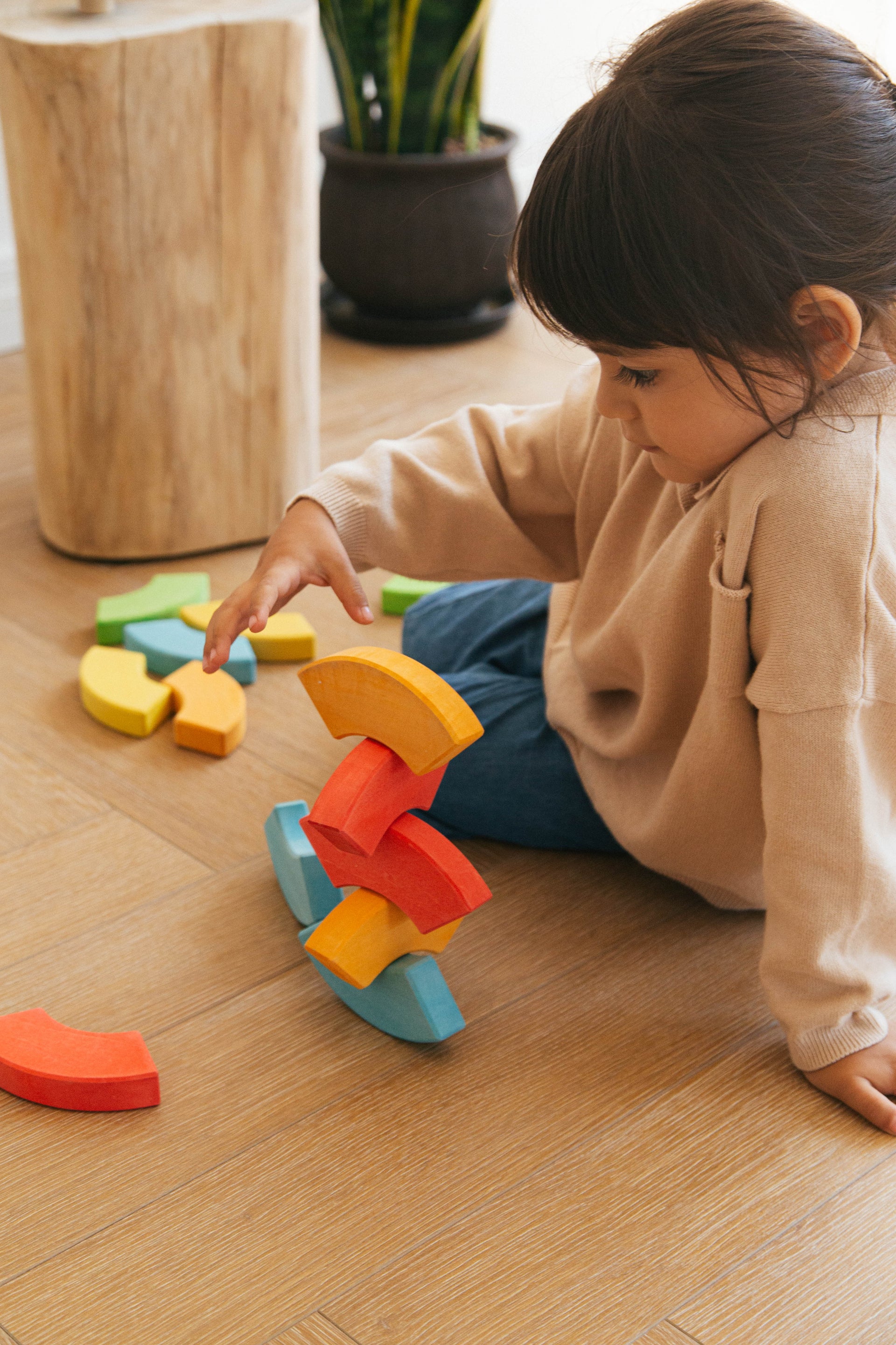 This 20-piece set features uniquely shaped blocks inspired by the four seasons. It’s a wonderful addition to open-ended play and can be used on its own or combined with other toys like the Rainbow Stacker and building blocks.