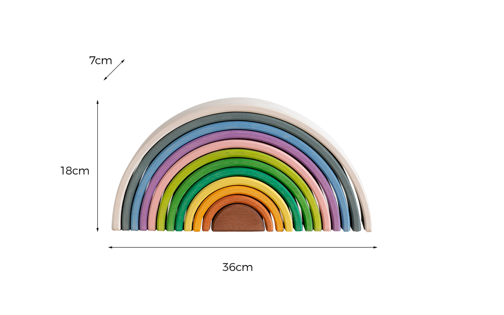 Handmade from a single piece of solid linden wood, each rainbow is one of a kind, showcasing natural wood grain and slight variations in shape. Finished with non-toxic, water-based paint, it’s designed to inspire creativity while reflecting the beauty of nature’s seasons.