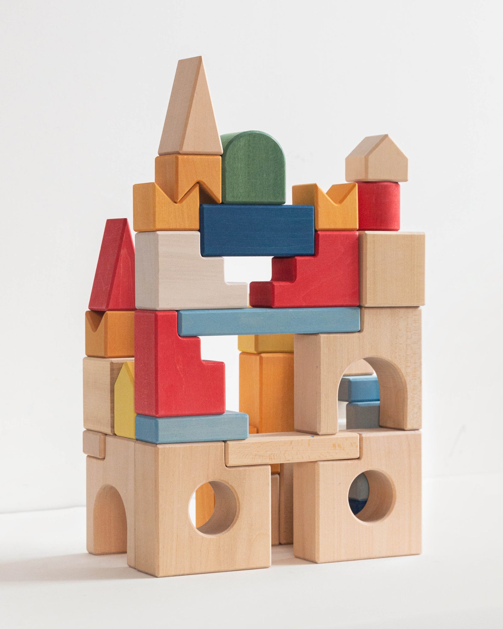 Inspired by the timeless magic of storybooks, this set invites children and families to create shared moments filled with wonder, discovery, and open-ended play. With 75 beautifully handcrafted wooden pieces, this comprehensive block set makes a perfect gift and is designed to grow with your child. From the earliest stacking experiments to complex castle scenes, it supports creativity and storytelling every step of the way.